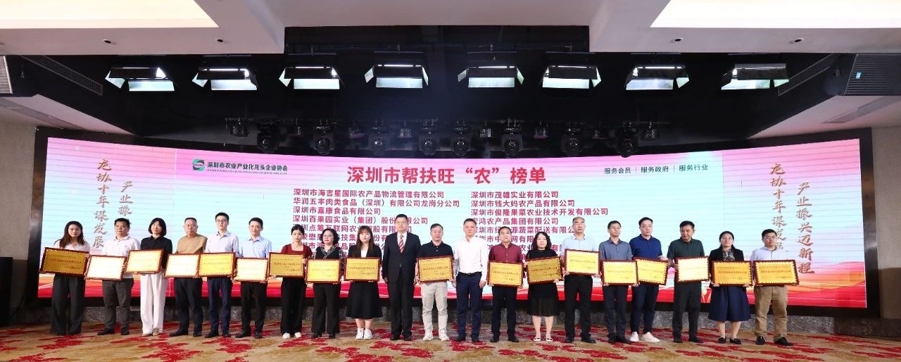 大会现场还为2023年深圳市农业龙头企业营业收入前20强、消费帮扶前20强企业,以及“金融支农”“保险助农”“质安护农”“标准为农”优秀服务机构颁发牌匾,并举行了“深圳市农业龙头企业总部基地”启动仪式。
